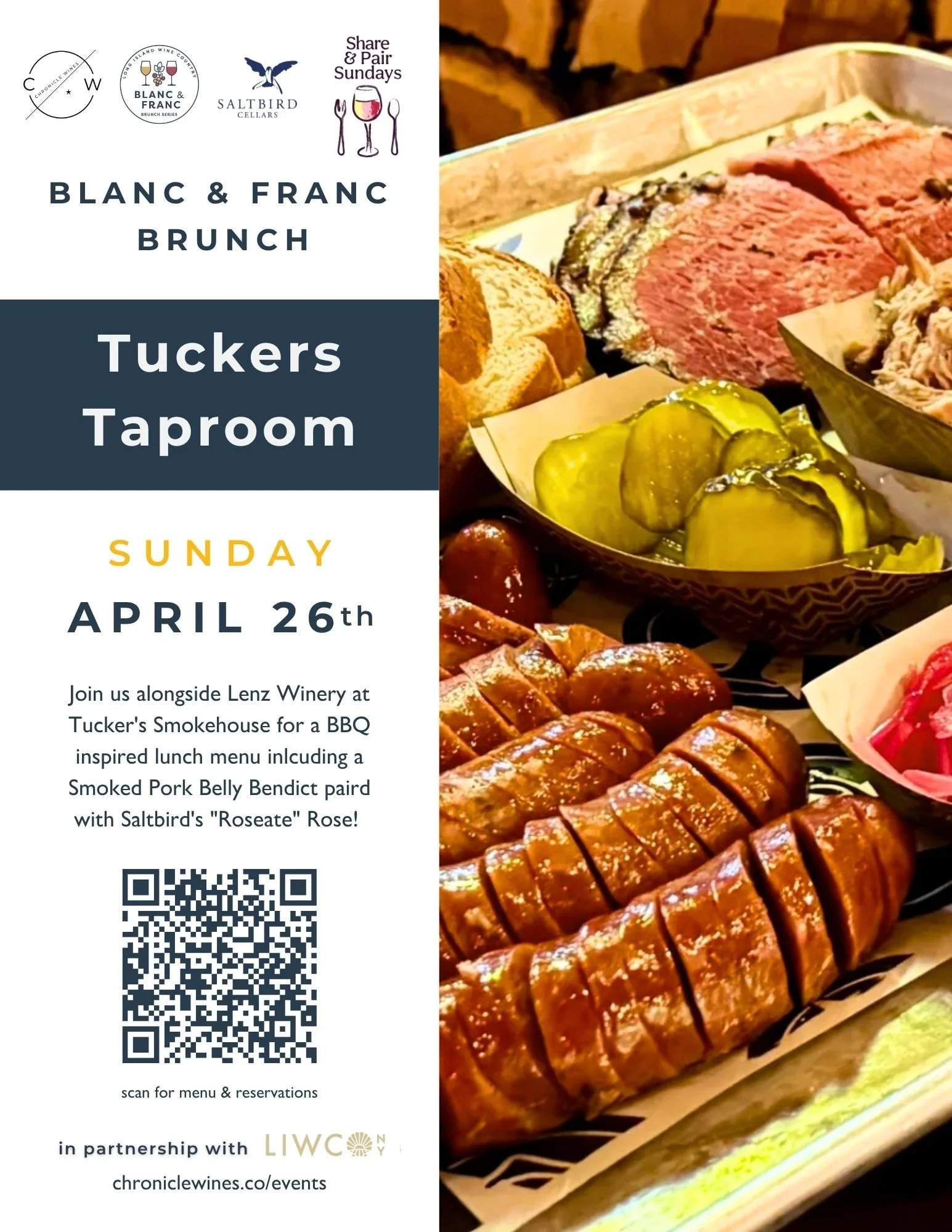 Join us alongside Lenz Winery for a BBQ Brunch at Tuckers Taproom & Smokehouse on Sunday, April 26th. Dining times available between 11am-6pm. Grab your tickets here!